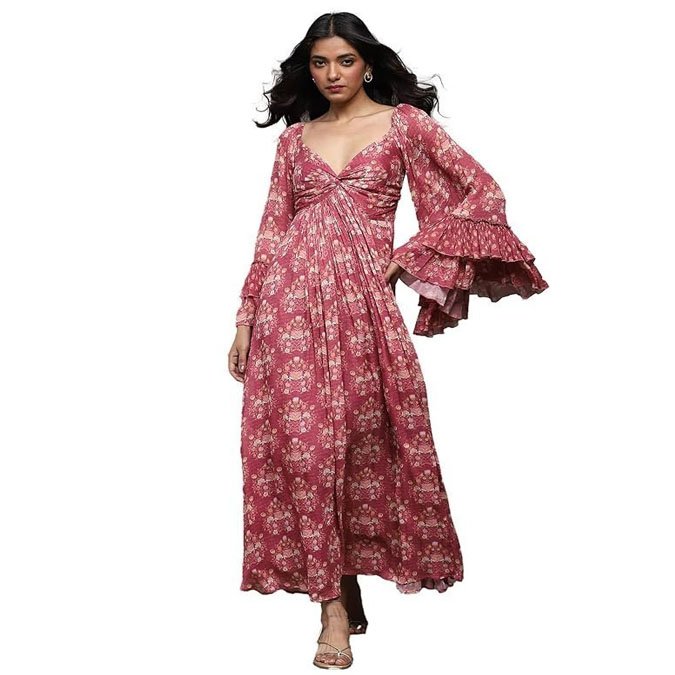Vaamsi Women’s Georgette Embroidered Flared Angrakha Pant With Dupatta With Inner