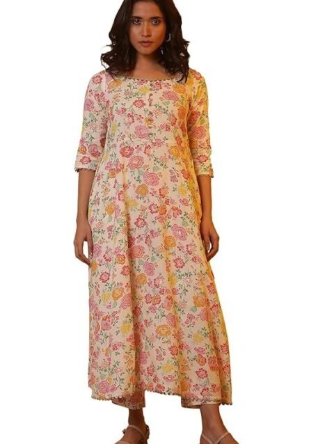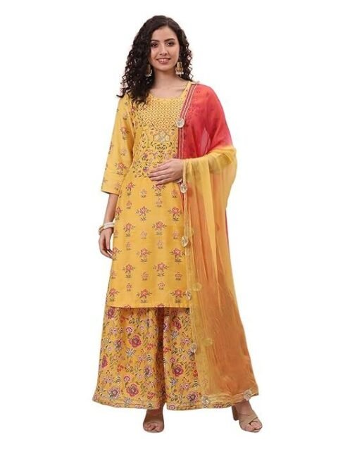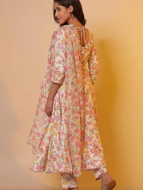 Aurelia Women’s Abstract Printed Flared Kurta Set with Trouser and Dupatta for Women