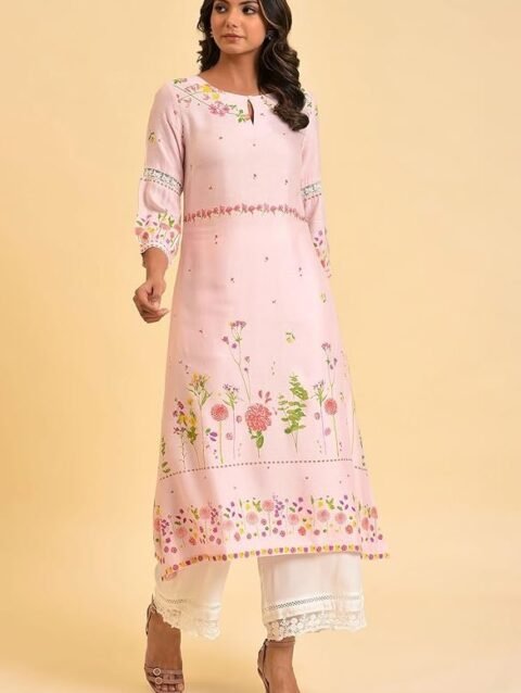 Blue Powder Chanderi Printed Kurta Bottom Set for Women