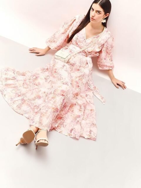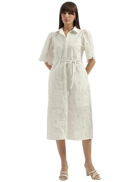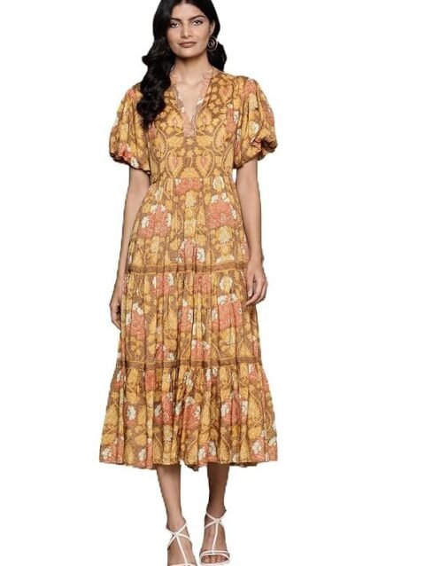 VERO MODA Women’s Polyester Fit and Flare Midi Dress
