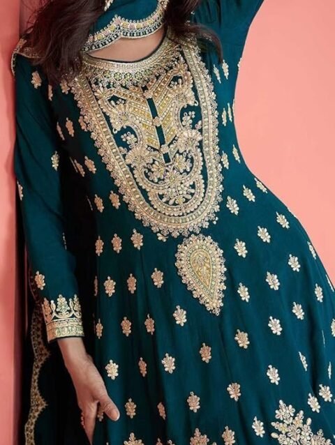 Vaamsi Women’s Georgette Embroidered Flared Angrakha Pant With Dupatta With Inner