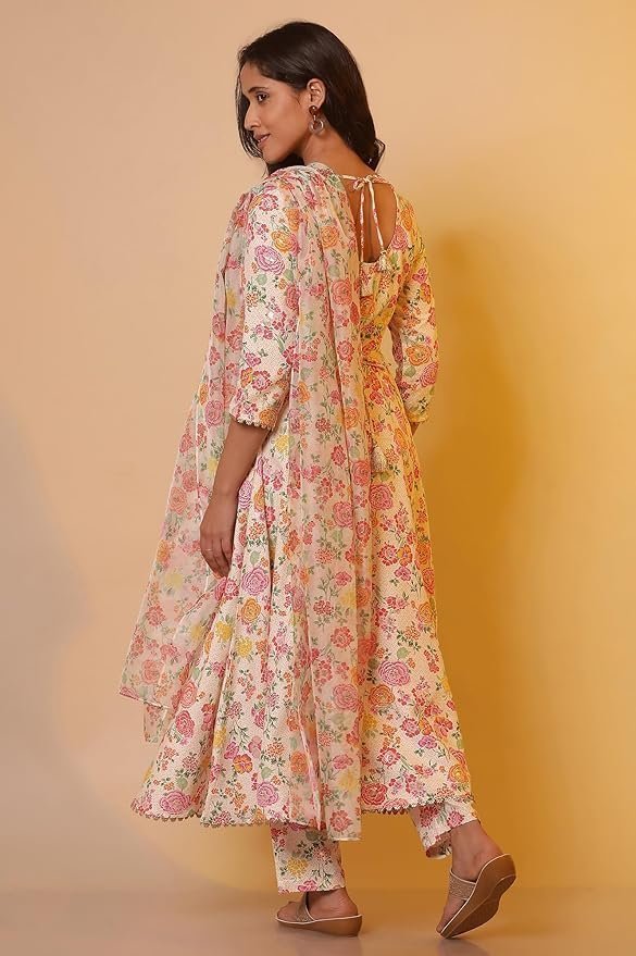 BIBA Women Cotton Anarkali Kurta Churidar Suit Set