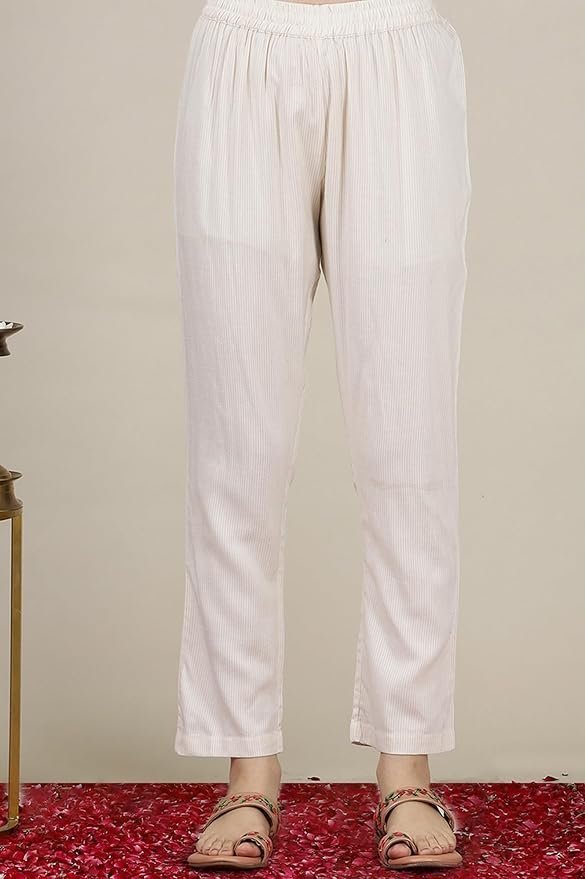 - Product Description: This cream coloured kurta set for women has flared silhouette and regular fit. The kurta is designed in round neck and has 3/4 sleeve. This beautiful yarn dyed kurta for women is crafted in premium fabric which is stylish and gives chic look. The set also includes trouser, which is crafted in rayon. This kurta set with a dupatta, which is adorned with yarn dyed and crafted in viscose rayon