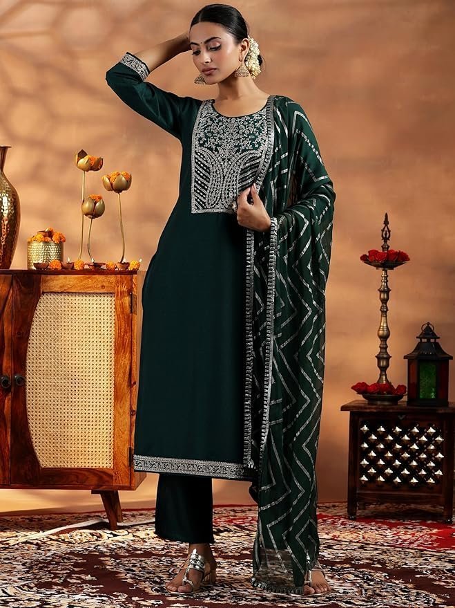 BIBA Women Cotton Anarkali Kurta Churidar Suit Set