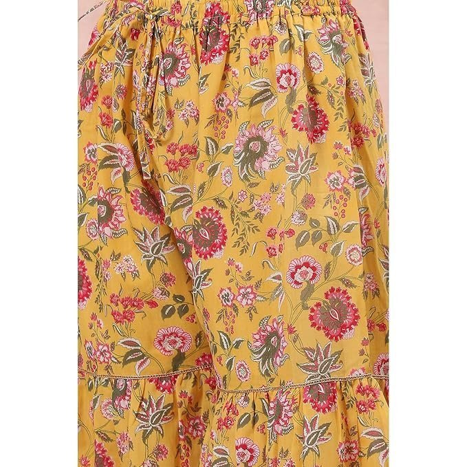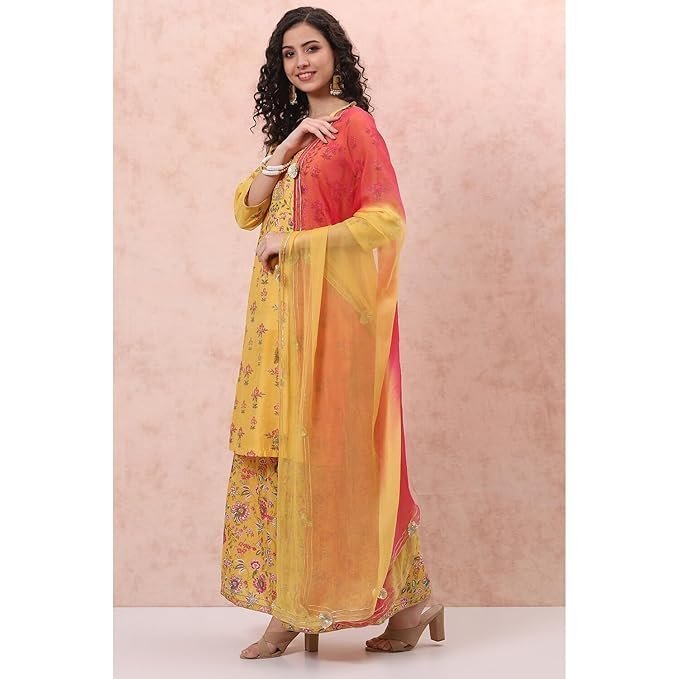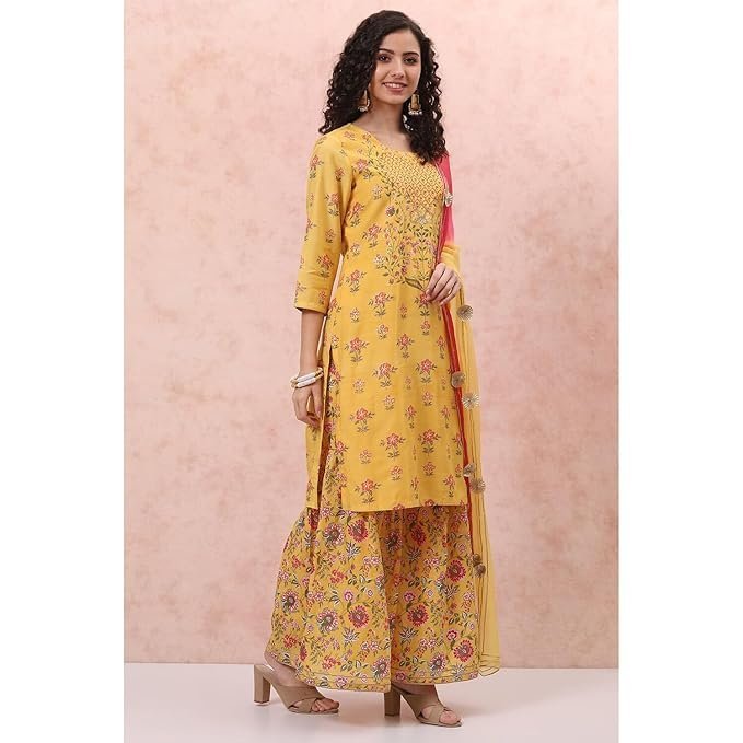 Rangriti Women Polyester Printed Yellow Suit Set
