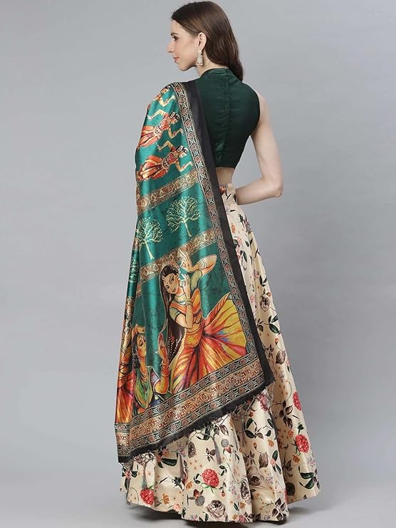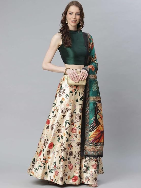 Texo Fab Women’s Digital Printed Zari Satin Silk Semi stitched Lehenga Choli With Art Silk Dupartta