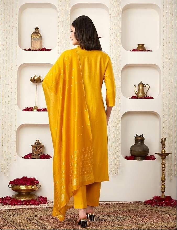 Women’s Embroidered Kurta Pant Set with Dupatta