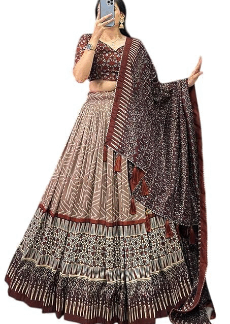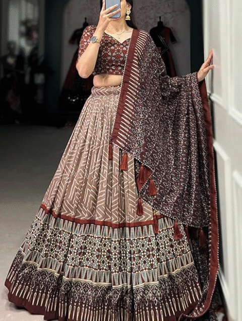 shree crialion Women’s Lehenga Choli | Tussar Silk With Patola Print With Foil Work For Women Solid Patola Print And Foil Work Lehenga choli