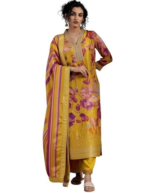 Texo Fab Women’s Digital Printed Zari Satin Silk Semi stitched Lehenga Choli With Art Silk Dupartta
