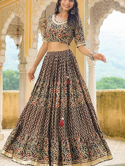 Janasya Womens Pure Cotton Readymade Batik Printed Tiered Ready to Wear Lehenga Choli Set