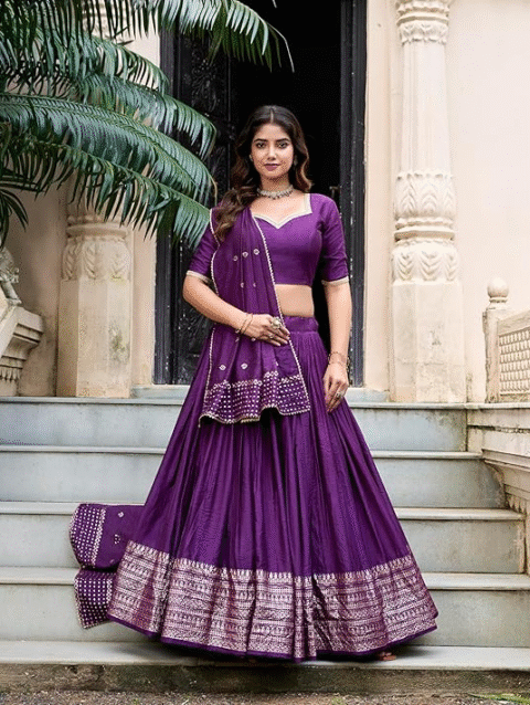 TRENDMALLS Women’s Satin Embroidery Sequence Work Lehenga Choli Set with Dupatta For Women SemiStitch | Stylish Wedding Lehenga Choli for women