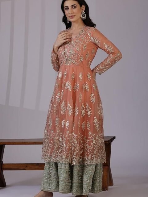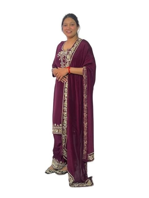 Women Embroidered Salwar Suit Set | Salwar Suit Fully Hand Work Embroidered | Punjabi Suit with Dupatta Set, Crepe with Polester Blend Fabric | Ethnic Wear & Stylish Suits | Maroon Color